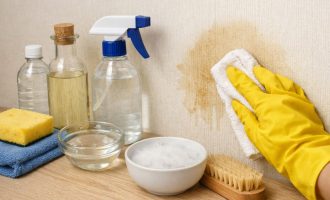 Vinagre de mesa. A opção mais poderosa para combater as nódoas difíceis. Misture água com vinagre numa proporção de um para um, mas tenha em atenção que irá aparecer um odor pungente durante o processo.
